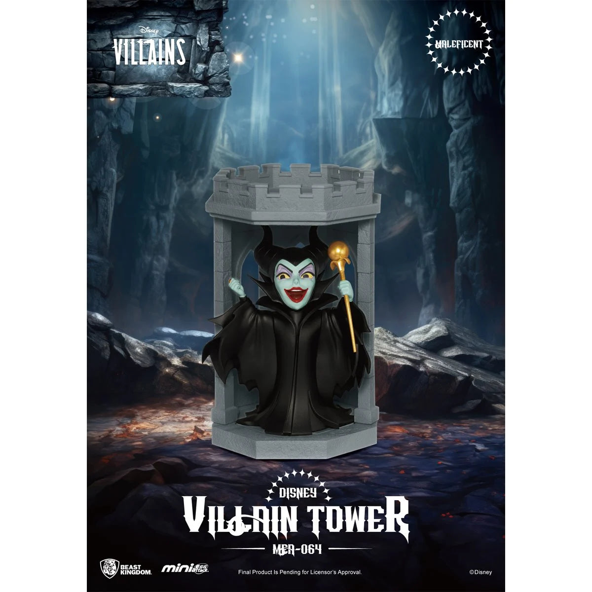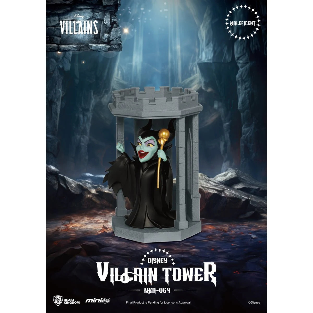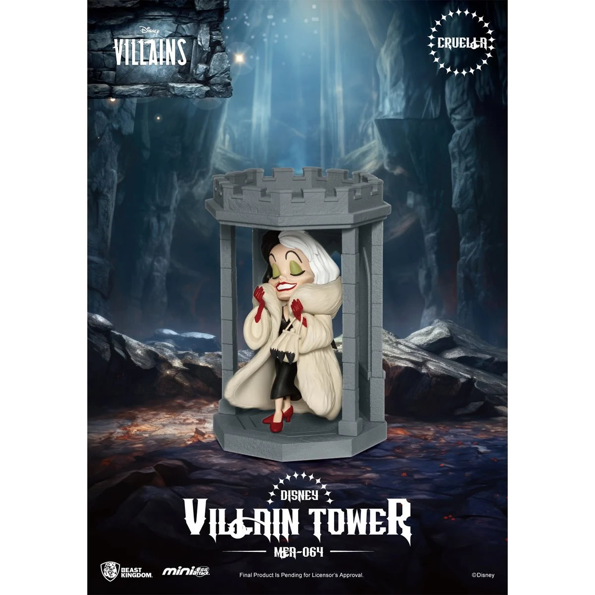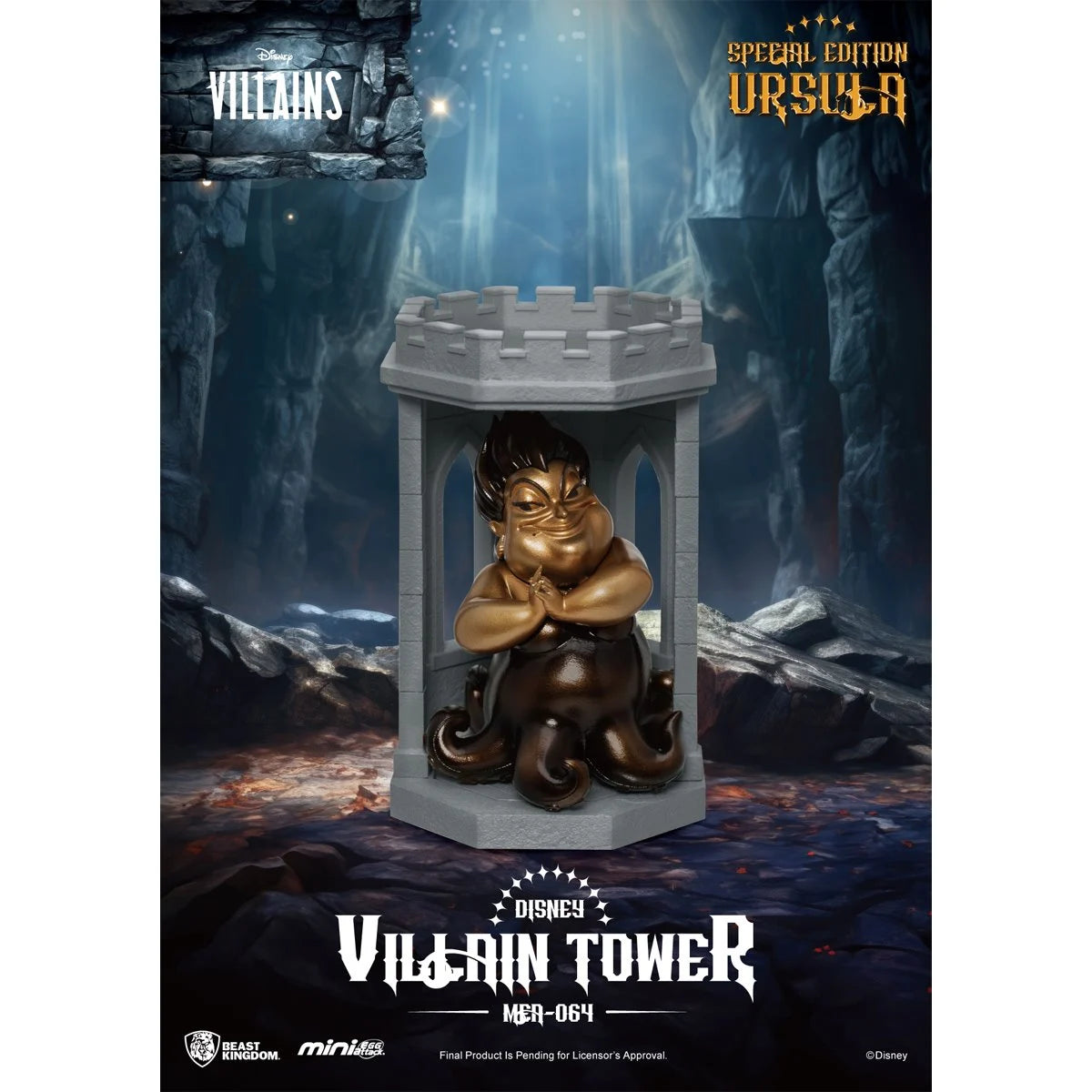 The Disney Villains Tower Series MEA-064 Mini-Figure Blind Box from Beast Kingdom revives iconic Disney villains! Each captivating character is transformed into a mini collectible with their own castle, perfect for individual display or combining into a dark tower. Characters included are Cruella, Ursula, Scar, Maleficent, Black Dragon Maleficent, and Jafar. Each figure comes with a tower that can be stacked to create your own display! Buy the complete series for a chance to receive the limited copper gold Ursula! Don't miss out on these classic villains! Each mini-figure measures approximately 4 1/2-inches. Ages 15 and up.