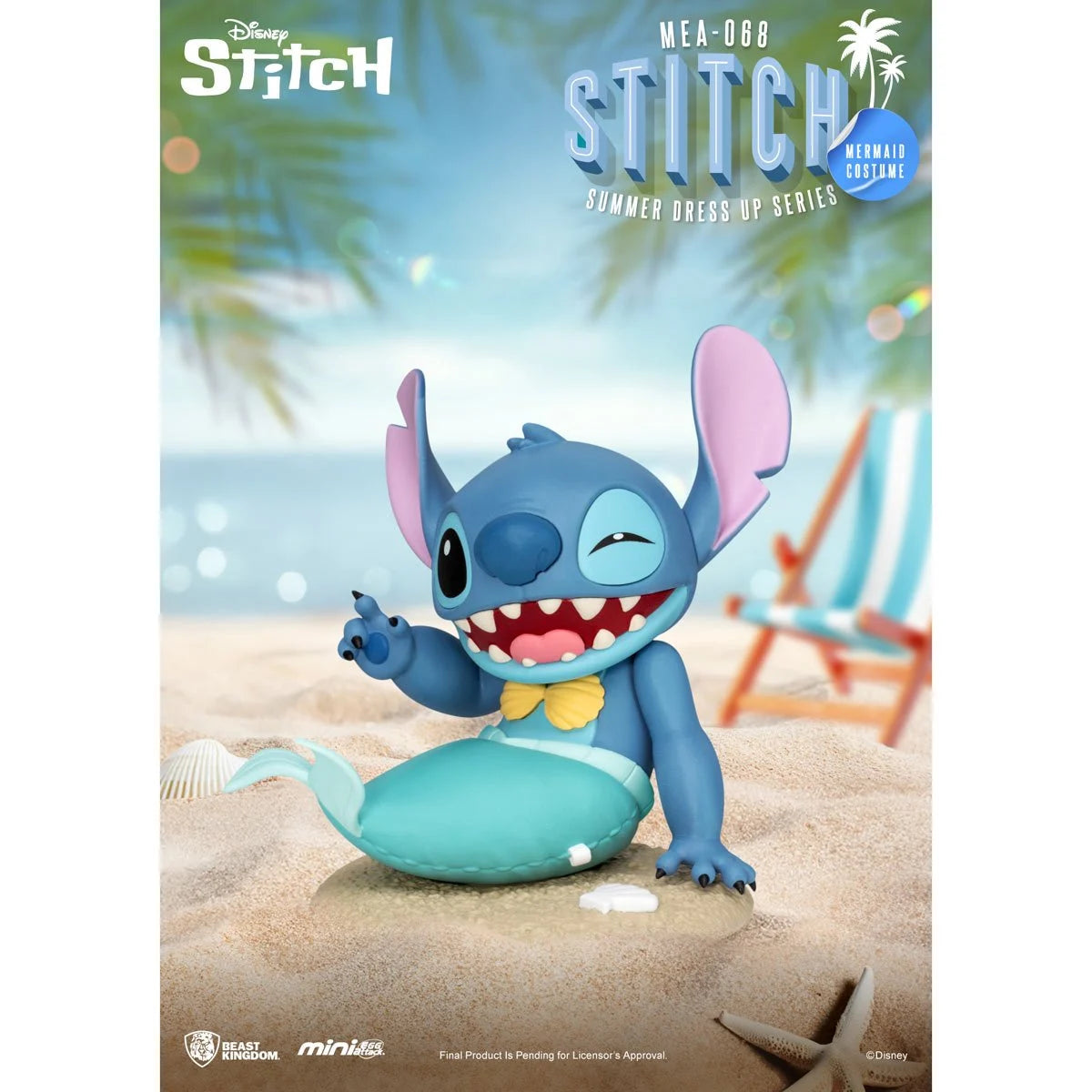 This Lilo & Stitch Stitch Summer Dress Up MEA-068 Mini-Figure Blind Box includes a randomly selected, blind-packaged figure.